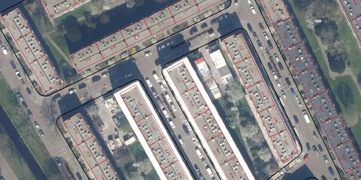 Het adres ligt op het perceel GVH28-AL-6380, dat zich in de kadastrale gemeente 's-Gravenhage bevindt. De gemiddelde perceeloppervlakte in de kadastrale gemeente 's-Gravenhage is 722,74 m². Dit perceel is met zijn 4110 m² dus groter dan gemiddeld. De grootste perceeloppervlakte in de kadastrale gemeente is 89,9 ha. De kleinste oppervlakte bedraagt 0 m². Op het perceel zijn 60 adressen aanwezig. In de Basisregistratie Kadaster (BRK) werden de grenzen van het perceel geregistreerd op 23-04-2003.