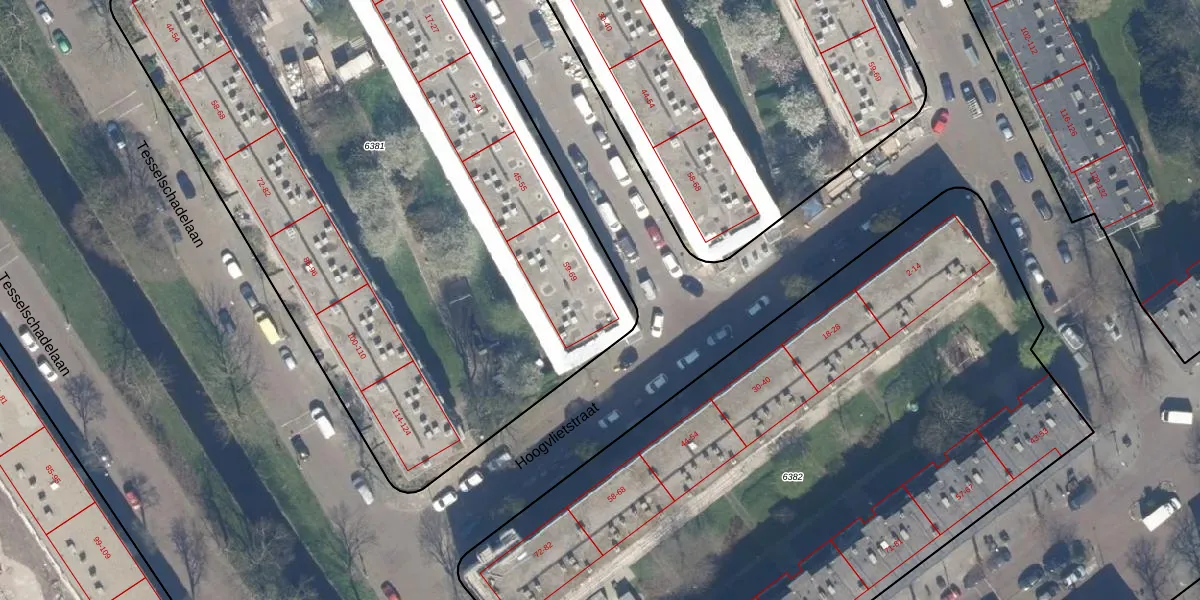 Het adres ligt op het perceel GVH28-AL-6381, dat zich in de kadastrale gemeente 's-Gravenhage bevindt. De oppervlakte van het perceel is 4828 m². Dat is groter dan gemiddeld in 's-Gravenhage, waar de gemiddelde perceeloppervlakte op 722,74 m² ligt. De grootste perceeloppervlakte in de kadastrale gemeente is 89,9 ha. De kleinste oppervlakte bedraagt 0 m². Op het perceel zijn 66 adressen aanwezig. De laatste wijziging in het de Basisregistratie Kadaster (BRK) was op 23-04-2003.