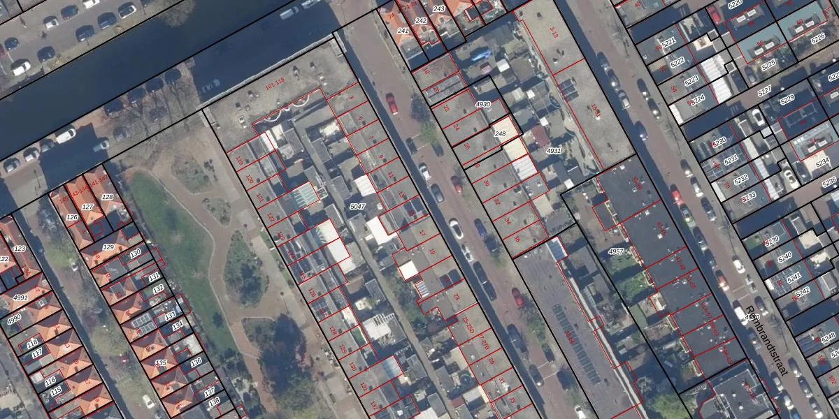Het perceel waarop het adres ligt is GVH22-AE-5047. De afkorting 'GVH22' staat voor kadastrale gemeente 's-Gravenhage. De oppervlakte van het perceel is 3930 m². Dat is groter dan gemiddeld in 's-Gravenhage, waar de gemiddelde perceeloppervlakte op 493,72 m² ligt. Het kleinste perceel in de kadastrale gemeente is 1 m² groot. De grootste perceeloppervlakte is 9,7 ha. Op het perceel zijn 60 adressen aanwezig. In de Basisregistratie Kadaster (BRK) werden de grenzen van het perceel geregistreerd op 22-09-2020.