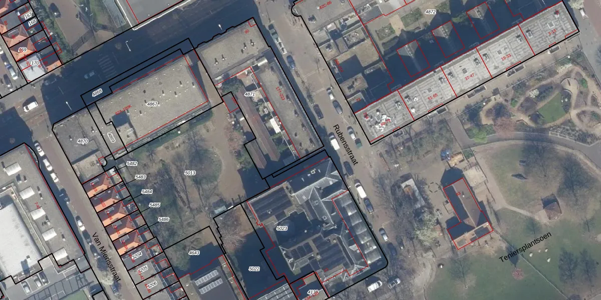 Het perceel waarop Rubensstraat 203 staat heeft een oppervlakte van 1041 m². Dit is een zeer groot perceel. De perceeloppervlakte wordt geregistreerd door het Kadaster. Gedetailleerde informatie over de maten van dit perceel kunt u vinden in het rapport Kadastrale kaart met maatvoering van Rubensstraat 203.