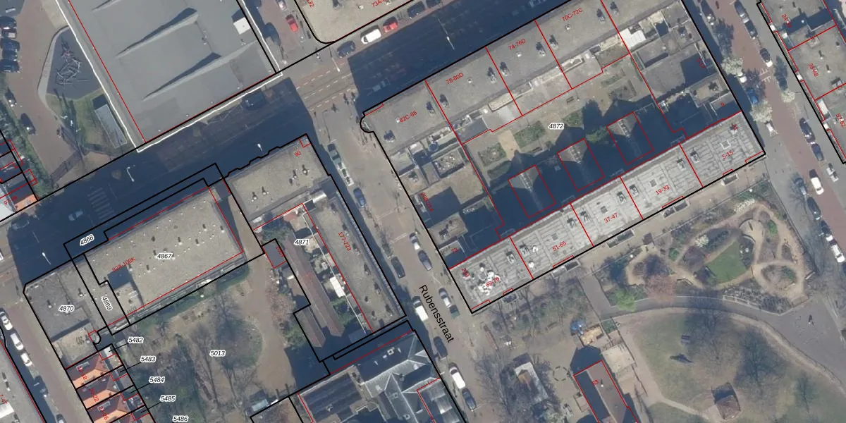 Het perceel waarop Rubensstraat 208 staat heeft een oppervlakte van 4279 m². Dit is een zeer groot perceel. De perceeloppervlakte wordt geregistreerd door het Kadaster. Gedetailleerde informatie over de maten van dit perceel kunt u vinden in het rapport Kadastrale kaart met maatvoering van Rubensstraat 208.