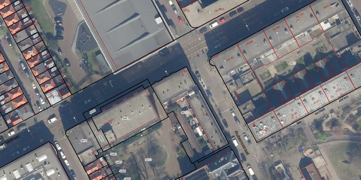 Rubensstraat 209 is gelegen op kadastraal perceel GVH22AE4871. Deze kadastrale aanduiding is uniek en wordt gebruikt door het Kadaster om eigendomsrechten en andere zakelijke rechten vast te leggen. Het perceel maakt onderdeel uit van de kadastrale gemeente 's-Gravenhage.