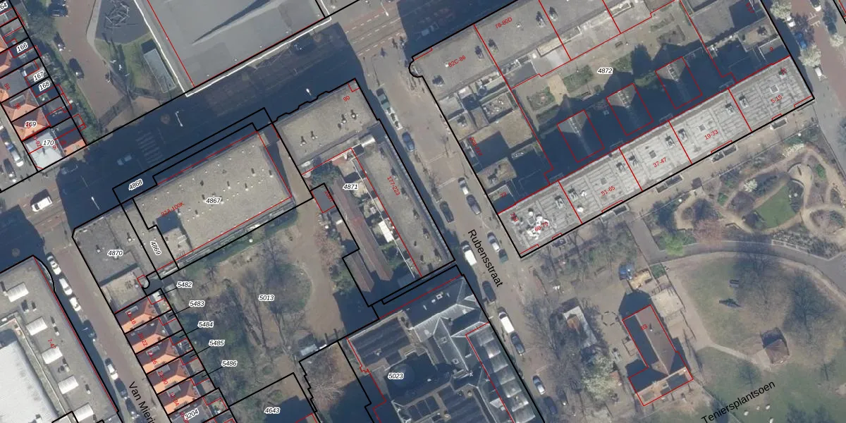 Het perceel waarop Rubensstraat 219 staat heeft een oppervlakte van 1041 m². Dit is een zeer groot perceel. De perceeloppervlakte wordt geregistreerd door het Kadaster. Gedetailleerde informatie over de maten van dit perceel kunt u vinden in het rapport Kadastrale kaart met maatvoering van Rubensstraat 219.