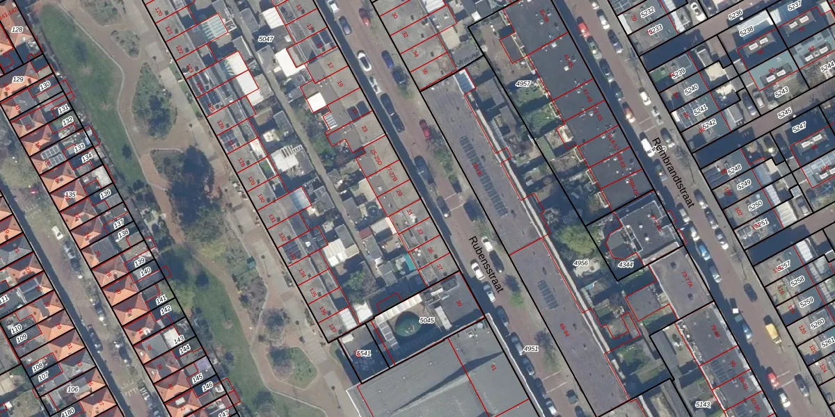 Het perceel waarop Rubensstraat 31 staat heeft een oppervlakte van 3930 m². Dit is een zeer groot perceel. De perceeloppervlakte wordt geregistreerd door het Kadaster. Gedetailleerde informatie over de maten van dit perceel kunt u vinden in het rapport Kadastrale kaart met maatvoering van Rubensstraat 31.