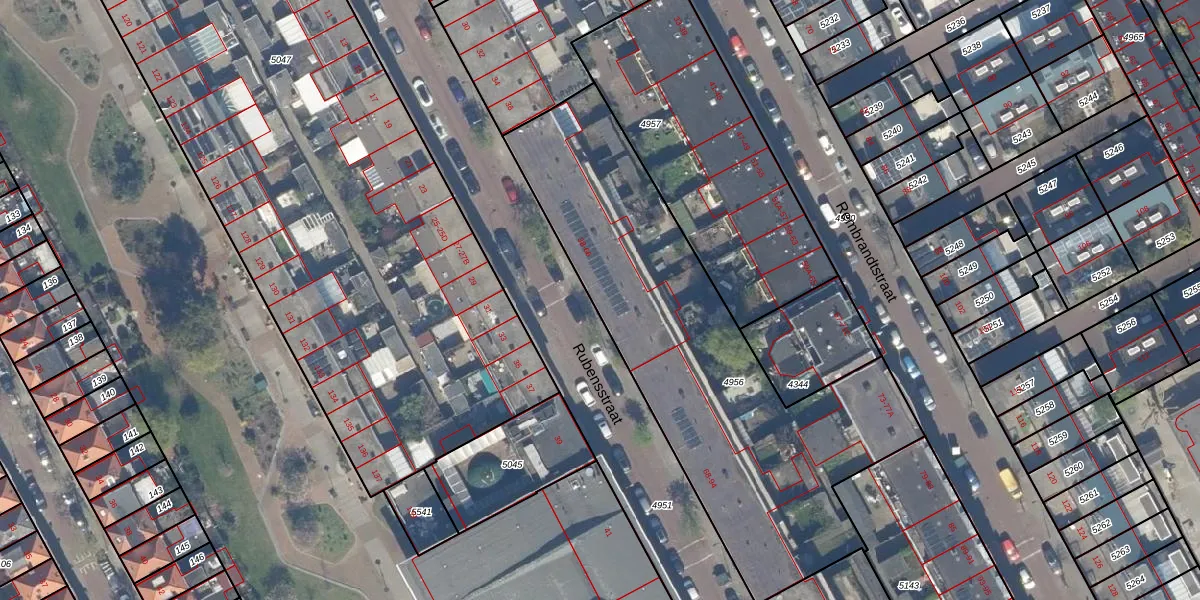 Rubensstraat 52 is gelegen op kadastraal perceel GVH22AE4956. Deze kadastrale aanduiding is uniek en wordt gebruikt door het Kadaster om eigendomsrechten en andere zakelijke rechten vast te leggen. Het perceel maakt onderdeel uit van de kadastrale gemeente 's-Gravenhage.