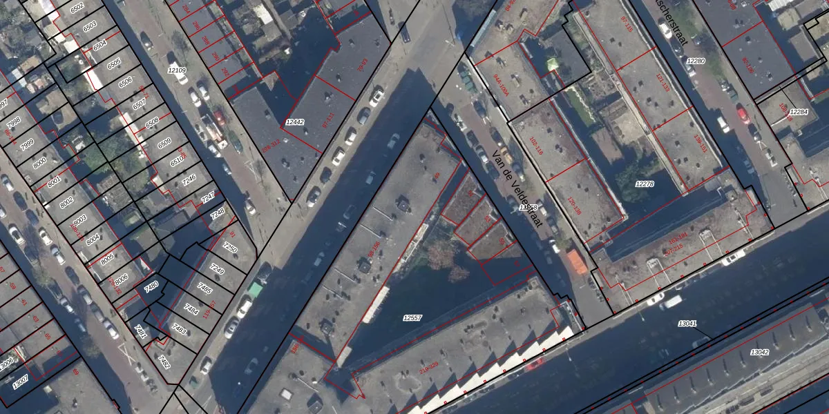 Het adres is gelegen op perceel 12557 in de sectie L en de kadastrale gemeente 's-Gravenhage. De kadastrale aanduiding is aldus GVH08-L-12557. De gemiddelde perceeloppervlakte in de kadastrale gemeente 's-Gravenhage is 468,2 m². Dit perceel is met zijn 3550 m² dus groter dan gemiddeld. De grootste perceeloppervlakte in de kadastrale gemeente is 3,8 ha. De kleinste oppervlakte bedraagt 0 m². Er zijn 92 adressen aanwezig op het perceel. De laatste wijziging in het de Basisregistratie Kadaster (BRK) was op 19-09-2003.