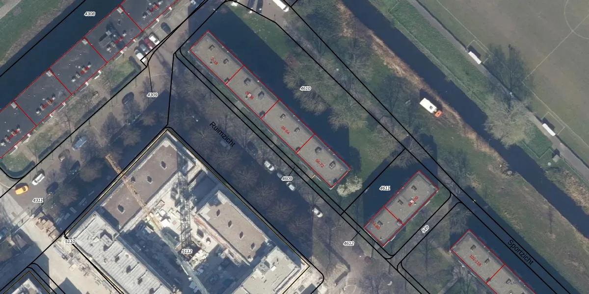 Het perceel waarop Ruimzicht 52 staat heeft een oppervlakte van 2322 m². Dit is een zeer groot perceel. De perceeloppervlakte wordt geregistreerd door het Kadaster. Gedetailleerde informatie over de maten van dit perceel kunt u vinden in het rapport Kadastrale kaart met maatvoering van Ruimzicht 52.