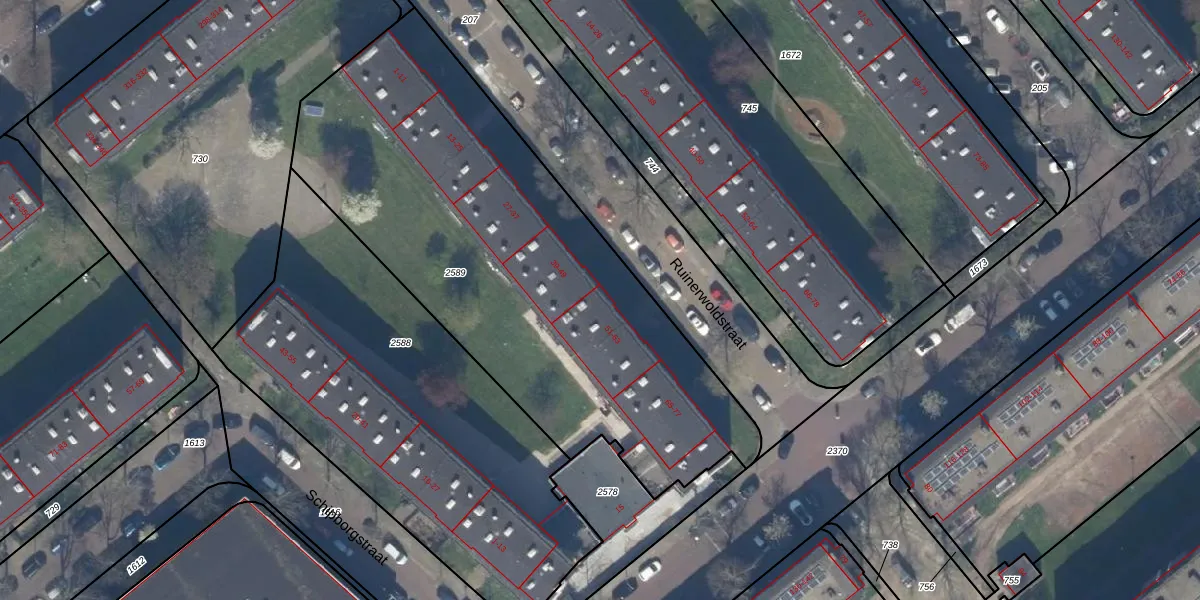 Ruinerwoldstraat 53 is gelegen op kadastraal perceel GVH37AW2589. Deze kadastrale aanduiding is uniek en wordt gebruikt door het Kadaster om eigendomsrechten en andere zakelijke rechten vast te leggen. Het perceel maakt onderdeel uit van de kadastrale gemeente 's-Gravenhage.