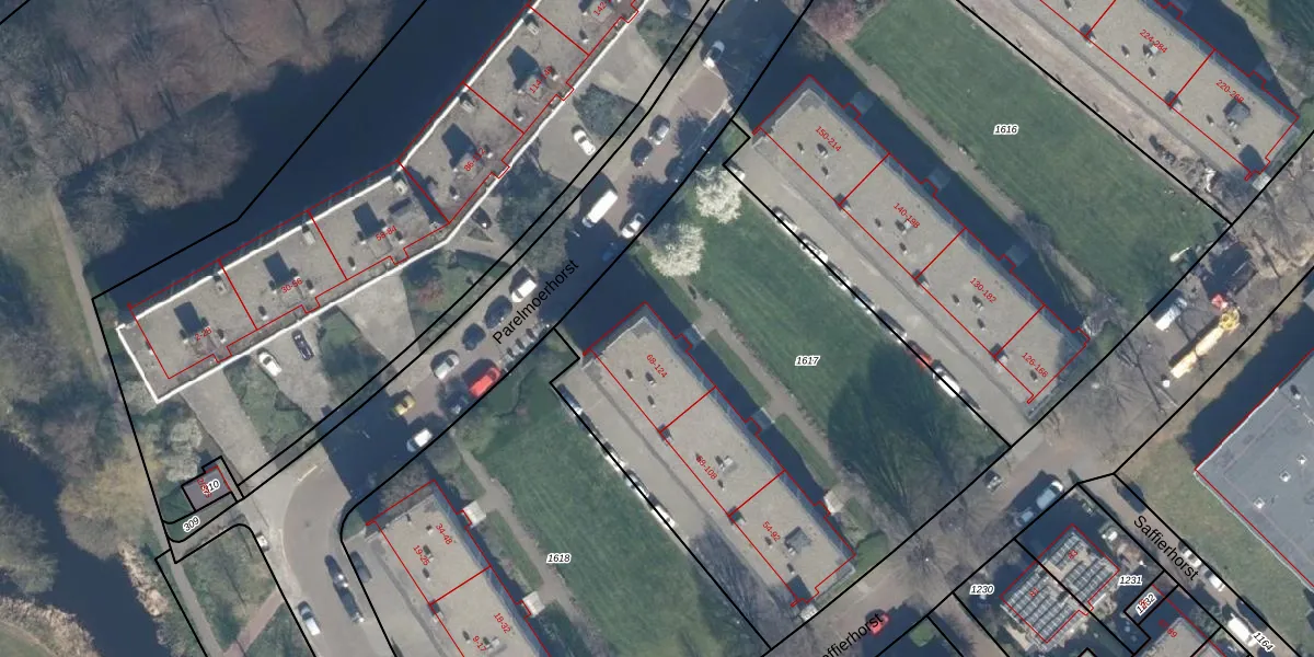 Het perceel waarop Saffierhorst 124 staat heeft een oppervlakte van 2710 m². Dit is een zeer groot perceel. De perceeloppervlakte wordt geregistreerd door het Kadaster. Gedetailleerde informatie over de maten van dit perceel kunt u vinden in het rapport Kadastrale kaart met maatvoering van Saffierhorst 124.
