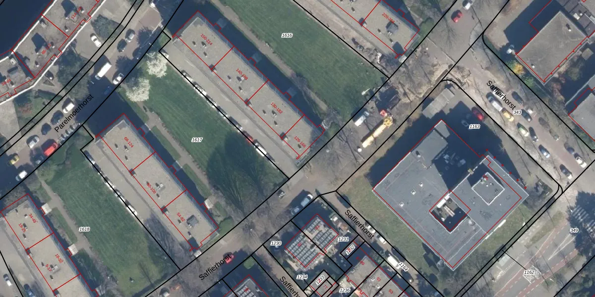 Het perceel waarop Saffierhorst 126 staat heeft een oppervlakte van 3075 m². Dit is een zeer groot perceel. De perceeloppervlakte wordt geregistreerd door het Kadaster. Gedetailleerde informatie over de maten van dit perceel kunt u vinden in het rapport Kadastrale kaart met maatvoering van Saffierhorst 126.