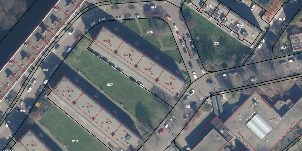 Het perceel waarop het adres ligt is GVH34-AS-1614. De afkorting 'GVH34' staat voor kadastrale gemeente 's-Gravenhage. De oppervlakte van het perceel is 2435 m². Dat is groter dan gemiddeld in 's-Gravenhage, waar de gemiddelde perceeloppervlakte op 1318,64 m² ligt. De grootste perceeloppervlakte in de kadastrale gemeente is 11,0 ha. De kleinste oppervlakte bedraagt 0 m². Op het perceel liggen in totaal 48 adressen. De laatste wijziging in het de Basisregistratie Kadaster (BRK) was op 10-06-2003.