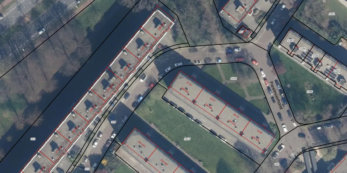 Het perceel waarop het adres ligt is GVH34-AS-1614. De afkorting 'GVH34' staat voor kadastrale gemeente 's-Gravenhage. De oppervlakte van het perceel is 2435 m². Dat is groter dan gemiddeld in 's-Gravenhage, waar de gemiddelde perceeloppervlakte op 1318,64 m² ligt. De grootste perceeloppervlakte in de kadastrale gemeente is 11,0 ha. De kleinste oppervlakte bedraagt 0 m². Er zijn 48 adressen aanwezig op het perceel. De laatste wijziging in het de Basisregistratie Kadaster (BRK) was op 10-06-2003.
