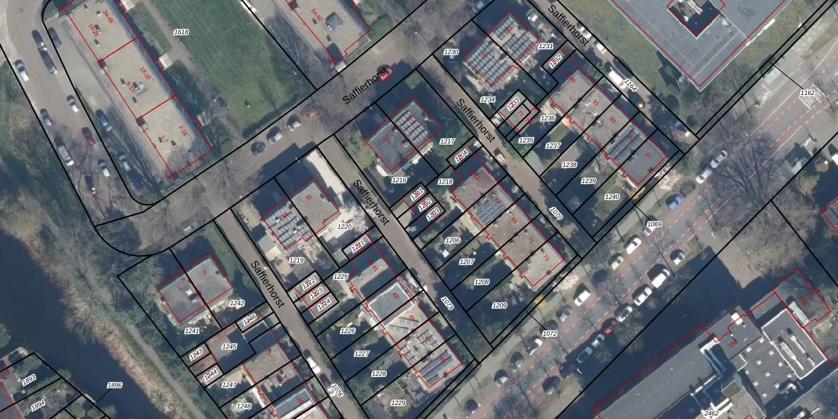 Gebruik de zoekbalk of klik op een perceel voor informatie over de adressen binnen dit perceel.