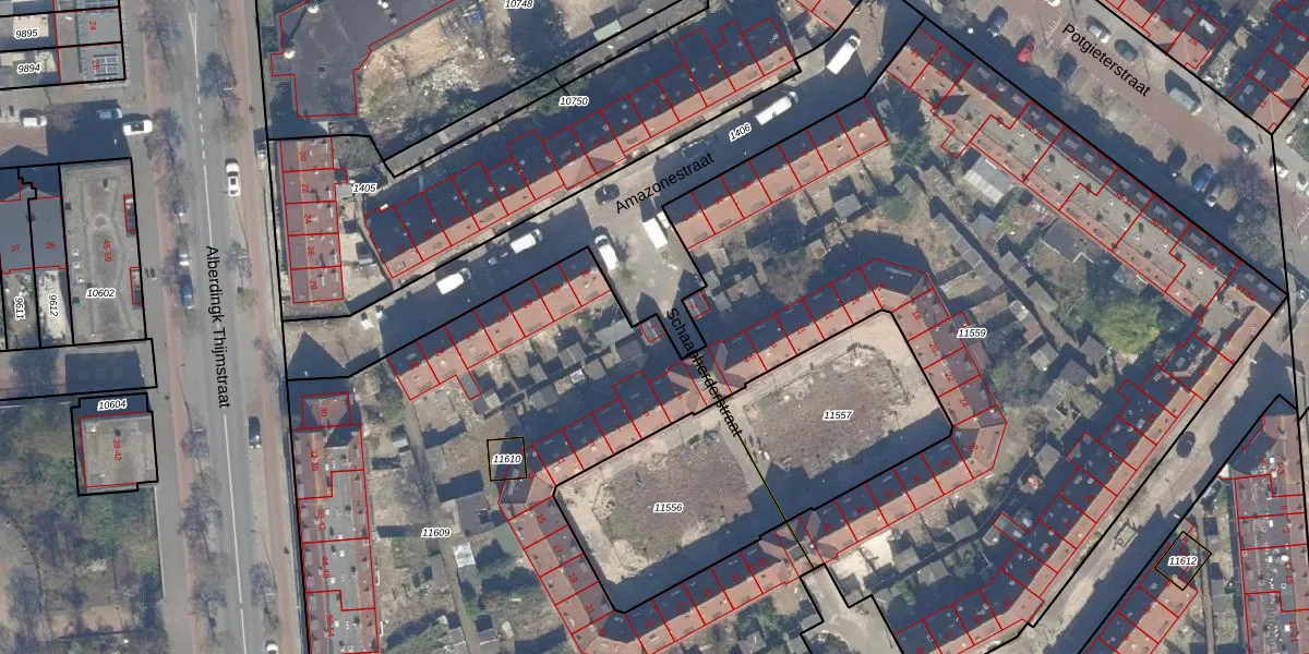 Het perceel waarop Schaapherderstraat 1 staat heeft een oppervlakte van 4649 m². Dit is een zeer groot perceel. De perceeloppervlakte wordt geregistreerd door het Kadaster. Gedetailleerde informatie over de maten van dit perceel kunt u vinden in het rapport Kadastrale kaart met maatvoering van Schaapherderstraat 1.