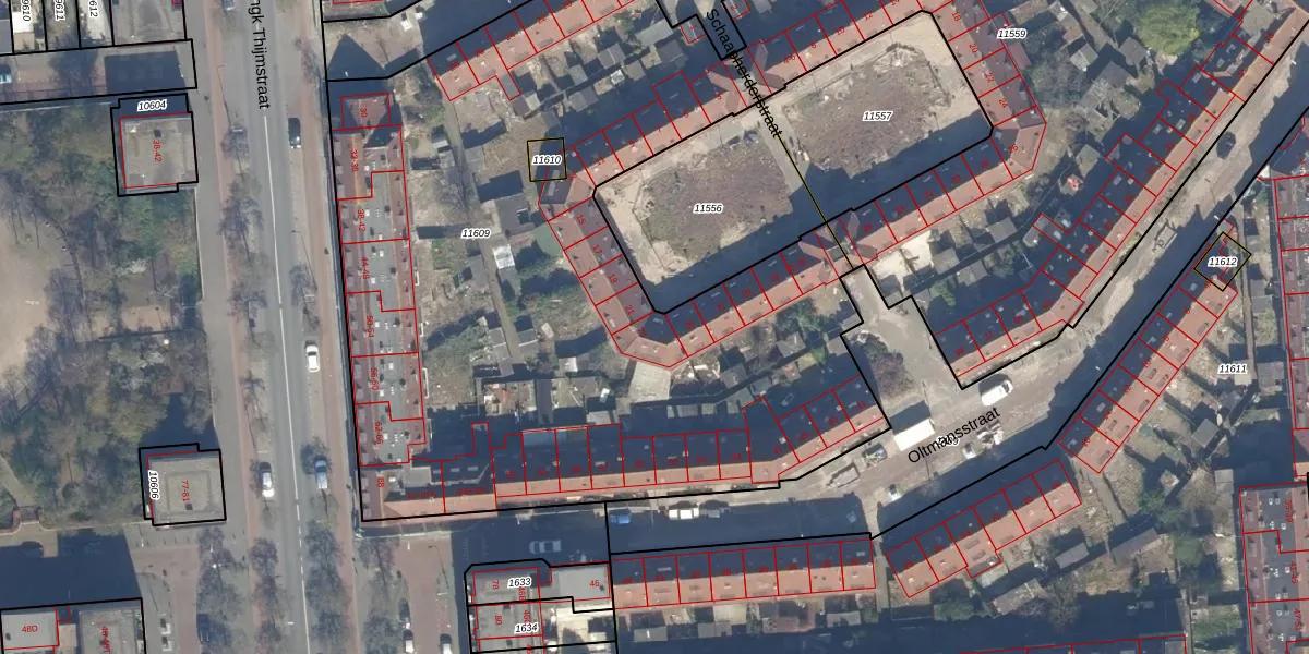 Het perceel waarop Schaapherderstraat 23 staat heeft een oppervlakte van 4649 m². Dit is een zeer groot perceel. De perceeloppervlakte wordt geregistreerd door het Kadaster. Gedetailleerde informatie over de maten van dit perceel kunt u vinden in het rapport Kadastrale kaart met maatvoering van Schaapherderstraat 23.