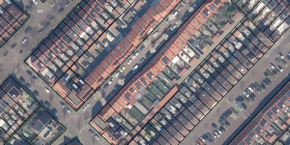 Het perceel waarop Scheepensstraat 16 staat heeft een oppervlakte van 3074 m². Dit is een zeer groot perceel. De perceeloppervlakte wordt geregistreerd door het Kadaster. Gedetailleerde informatie over de maten van dit perceel kunt u vinden in het rapport Kadastrale kaart met maatvoering van Scheepensstraat 16.