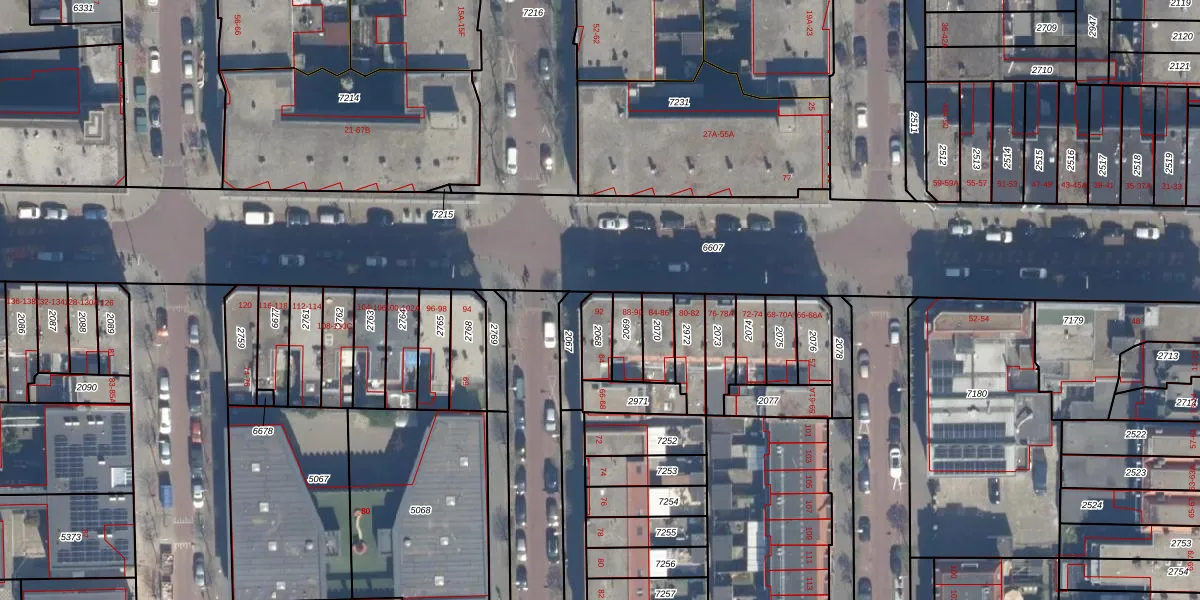 Het perceel waarop het adres ligt is GVH19-AB-2068. De afkorting 'GVH19' staat voor kadastrale gemeente 's-Gravenhage. Het perceel is kleiner dan gemiddeld in 's-Gravenhage. Het perceel is 77 m² groot, terwijl het gemiddelde ligt op 366,58 m². Het grootste perceel in de kadastrale gemeente is 2,7 ha. Het kleinste perceel heeft een oppervlakte van 0 m². Er zijn 2 adressen aanwezig op het perceel. In de Basisregistratie Kadaster (BRK) werden de grenzen van het perceel geregistreerd op 18-09-2003.