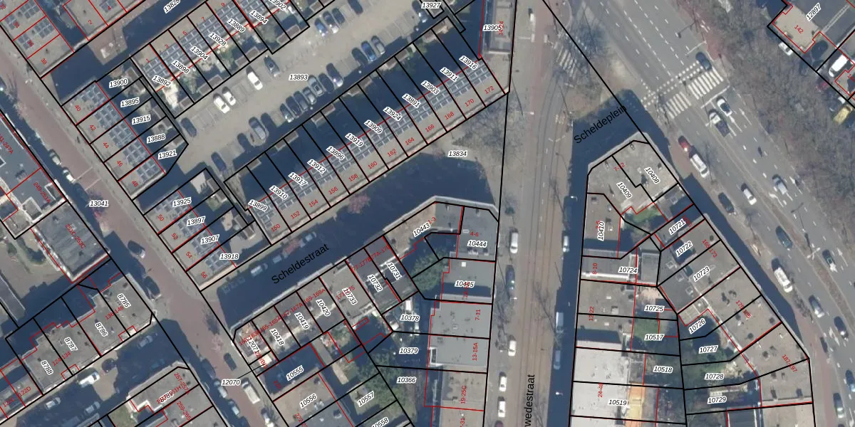 Scheldeplein 1 is gelegen op kadastraal perceel GVH12R10443. Deze kadastrale aanduiding is uniek en wordt gebruikt door het Kadaster om eigendomsrechten en andere zakelijke rechten vast te leggen. Het perceel maakt onderdeel uit van de kadastrale gemeente 's-Gravenhage.