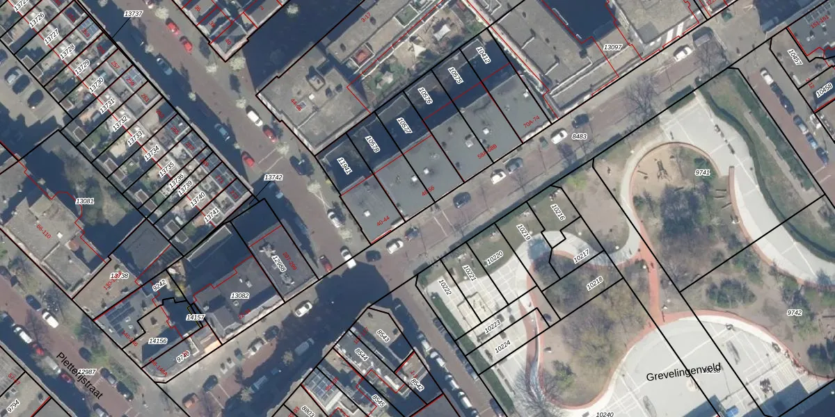 Het perceel waarop het adres ligt is GVH12-R-10578. De afkorting 'GVH12' staat voor kadastrale gemeente 's-Gravenhage. Het perceel is 220 m² groot. Dat is kleiner dan de gemiddelde perceeloppervlakte in 's-Gravenhage, dat op 543,78 m² ligt. De grootste perceeloppervlakte in de kadastrale gemeente is 5,9 ha. De kleinste oppervlakte bedraagt 0 m². Op het perceel liggen in totaal 3 adressen. In de Basisregistratie Kadaster (BRK) werden de grenzen van het perceel geregistreerd op 16-04-2009.
