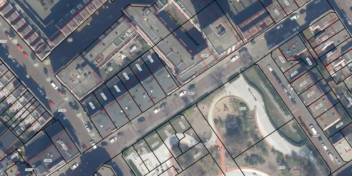 Het adres ligt op het perceel GVH12-R-10412, dat zich in de kadastrale gemeente 's-Gravenhage bevindt. De gemiddelde perceelgrootte in 's-Gravenhage is 543,78 m². Dit perceel is kleiner: de perceeloppervlakte bedraagt 225 m². Het grootste perceel in de kadastrale gemeente is 5,9 ha. Het kleinste perceel heeft een oppervlakte van 0 m². Op het perceel zijn 4 adressen aanwezig. De huidige grenzen van het perceel zijn digitaal in de Basisregistratie Kadaster (BRK) geregistreerd op 16-04-2009.