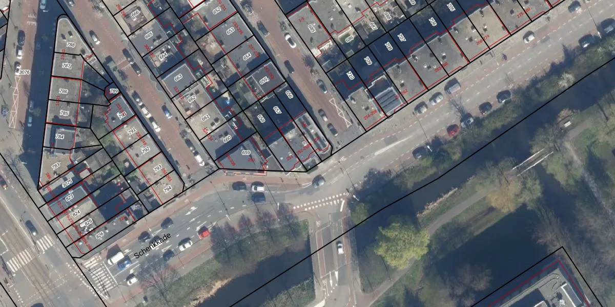 Schenkkade 252-B is gelegen op kadastraal perceel GVH35AU657. Deze kadastrale aanduiding is uniek en wordt gebruikt door het Kadaster om eigendomsrechten en andere zakelijke rechten vast te leggen. Het perceel maakt onderdeel uit van de kadastrale gemeente 's-Gravenhage.