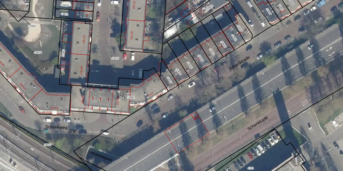 Het perceel waarop Schenkkade 3 staat heeft een oppervlakte van 96 m². Dit is een klein perceel. De perceeloppervlakte wordt geregistreerd door het Kadaster. Gedetailleerde informatie over de maten van dit perceel kunt u vinden in het rapport Kadastrale kaart met maatvoering van Schenkkade 3.