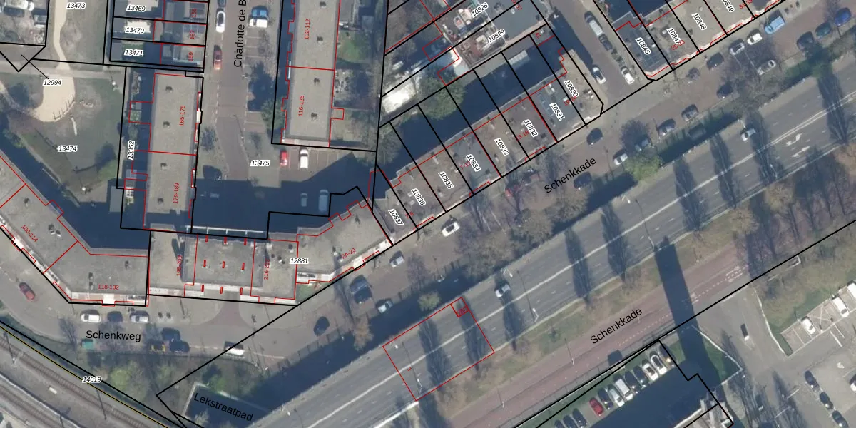 Het perceel waarop Schenkkade 4 staat heeft een oppervlakte van 176 m². Dit is een middelgroot perceel. De perceeloppervlakte wordt geregistreerd door het Kadaster. Gedetailleerde informatie over de maten van dit perceel kunt u vinden in het rapport Kadastrale kaart met maatvoering van Schenkkade 4.