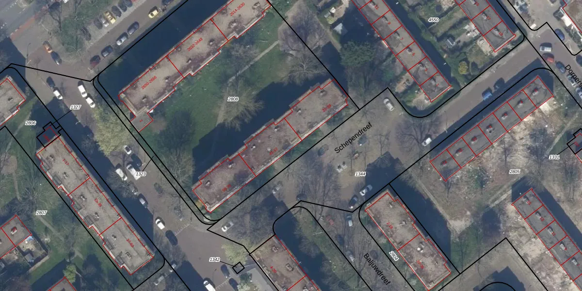 Het perceel waarop Schependreef 43 staat heeft een oppervlakte van 4188 m². Dit is een zeer groot perceel. De perceeloppervlakte wordt geregistreerd door het Kadaster. Gedetailleerde informatie over de maten van dit perceel kunt u vinden in het rapport Kadastrale kaart met maatvoering van Schependreef 43.