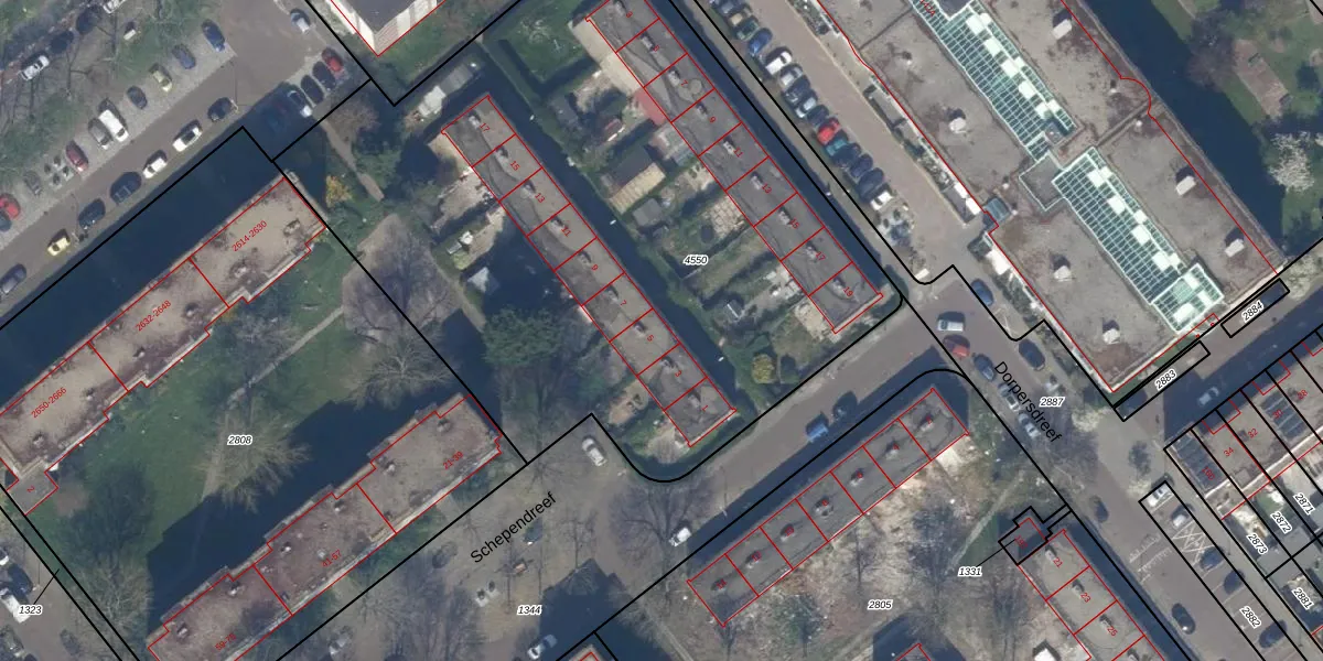 Het perceel waarop Schependreef 5 staat heeft een oppervlakte van 4259 m². Dit is een zeer groot perceel. De perceeloppervlakte wordt geregistreerd door het Kadaster. Gedetailleerde informatie over de maten van dit perceel kunt u vinden in het rapport Kadastrale kaart met maatvoering van Schependreef 5.