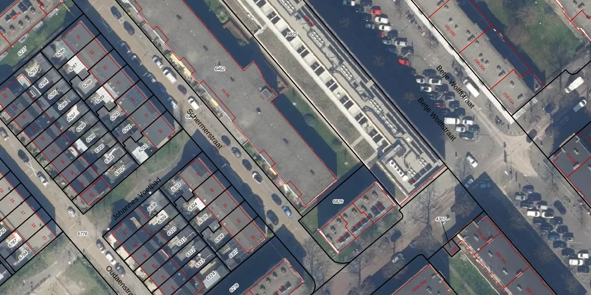 Het perceel waarop Schermerstraat 64 staat heeft een oppervlakte van 2766 m². Dit is een zeer groot perceel. De perceeloppervlakte wordt geregistreerd door het Kadaster. Gedetailleerde informatie over de maten van dit perceel kunt u vinden in het rapport Kadastrale kaart met maatvoering van Schermerstraat 64.