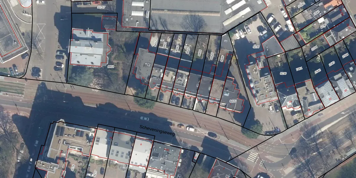 Scheveningseweg 9 is gelegen op kadastraal perceel GVH11P8443. Deze kadastrale aanduiding is uniek en wordt gebruikt door het Kadaster om eigendomsrechten en andere zakelijke rechten vast te leggen. Het perceel maakt onderdeel uit van de kadastrale gemeente 's-Gravenhage.