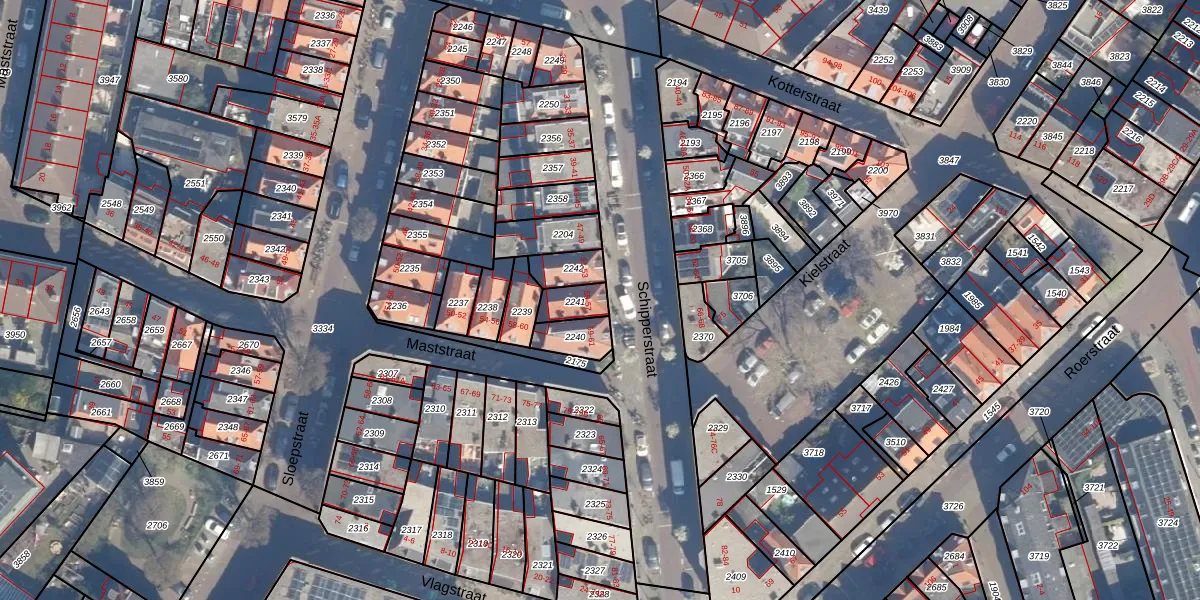 Het perceel waarop Schipperstraat 57 staat heeft een oppervlakte van 65 m². Dit is een klein perceel. De perceeloppervlakte wordt geregistreerd door het Kadaster. Gedetailleerde informatie over de maten van dit perceel kunt u vinden in het rapport Kadastrale kaart met maatvoering van Schipperstraat 57.