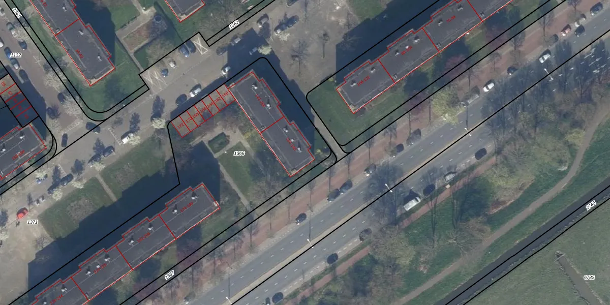 Het perceel waarop het adres ligt is GVH37-AW-1366. De afkorting 'GVH37' staat voor kadastrale gemeente 's-Gravenhage. De oppervlakte van het perceel is 3327 m². Dat is groter dan gemiddeld in 's-Gravenhage, waar de gemiddelde perceeloppervlakte op 1320,78 m² ligt. Het grootste perceel in de kadastrale gemeente is 12,9 ha. Het kleinste perceel heeft een oppervlakte van 0 m². Er zijn 55 adressen aanwezig op het perceel. In de Basisregistratie Kadaster (BRK) werden de grenzen van het perceel geregistreerd op 11-06-2002.