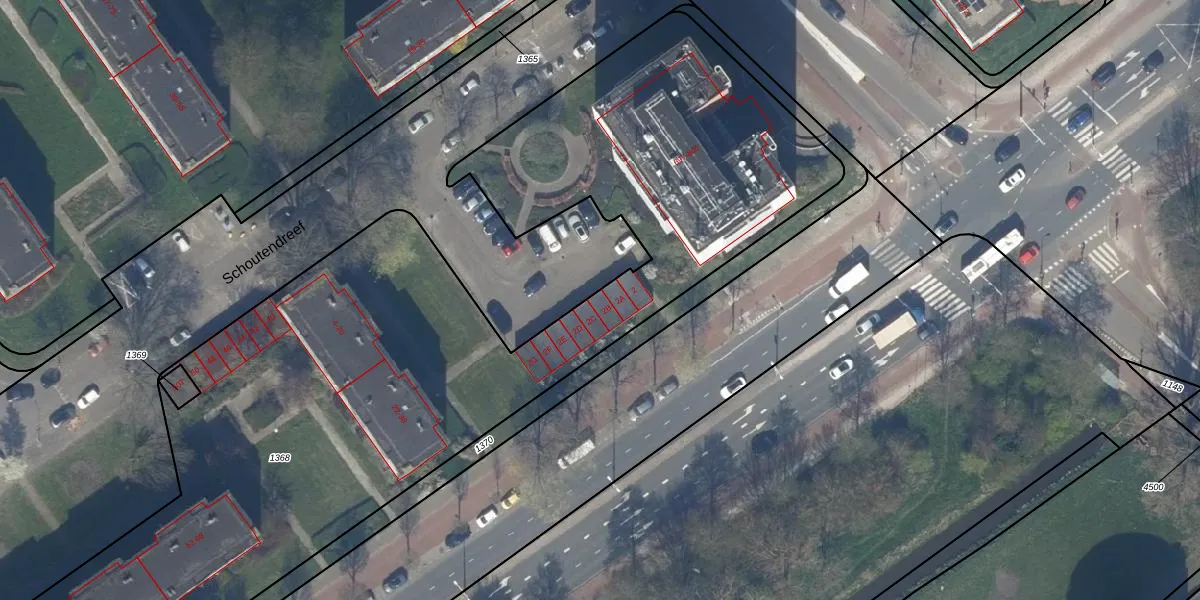Schoutendreef 2-B is gelegen op kadastraal perceel GVH37AW1368. Deze kadastrale aanduiding is uniek en wordt gebruikt door het Kadaster om eigendomsrechten en andere zakelijke rechten vast te leggen. Het perceel maakt onderdeel uit van de kadastrale gemeente 's-Gravenhage.
