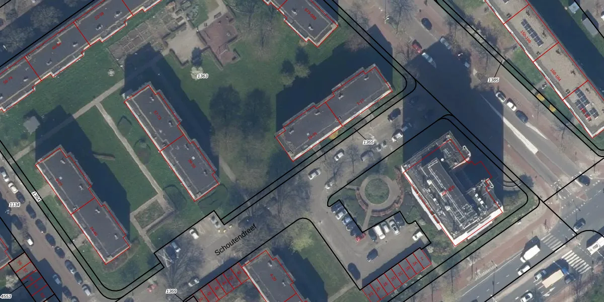 Schoutendreef 33 is gelegen op kadastraal perceel GVH37AW1363. Deze kadastrale aanduiding is uniek en wordt gebruikt door het Kadaster om eigendomsrechten en andere zakelijke rechten vast te leggen. Het perceel maakt onderdeel uit van de kadastrale gemeente 's-Gravenhage.