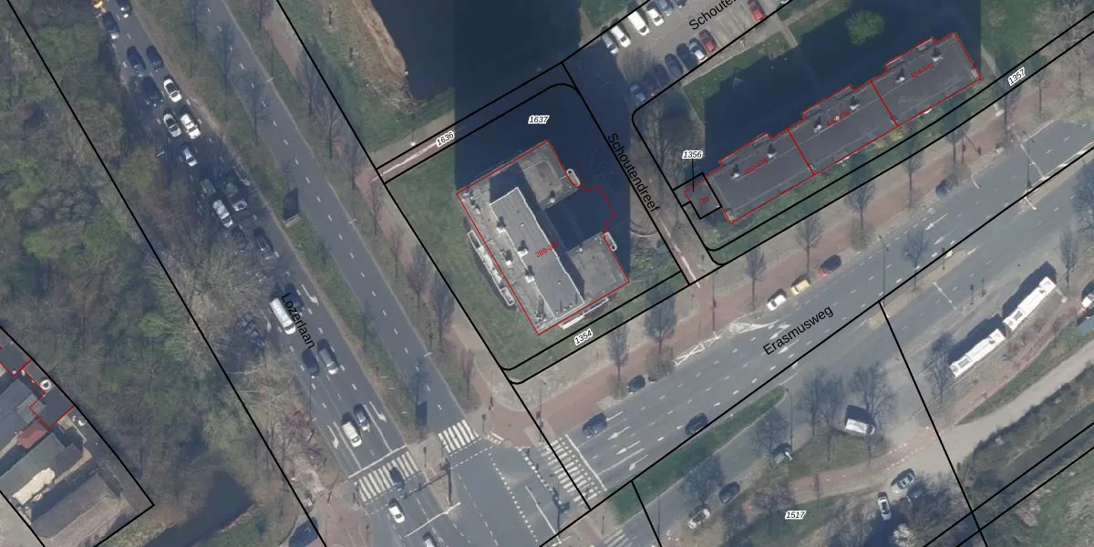 Het perceel waarop Schoutendreef 393 staat heeft een oppervlakte van 1566 m². Dit is een zeer groot perceel. De perceeloppervlakte wordt geregistreerd door het Kadaster. Gedetailleerde informatie over de maten van dit perceel kunt u vinden in het rapport Kadastrale kaart met maatvoering van Schoutendreef 393.