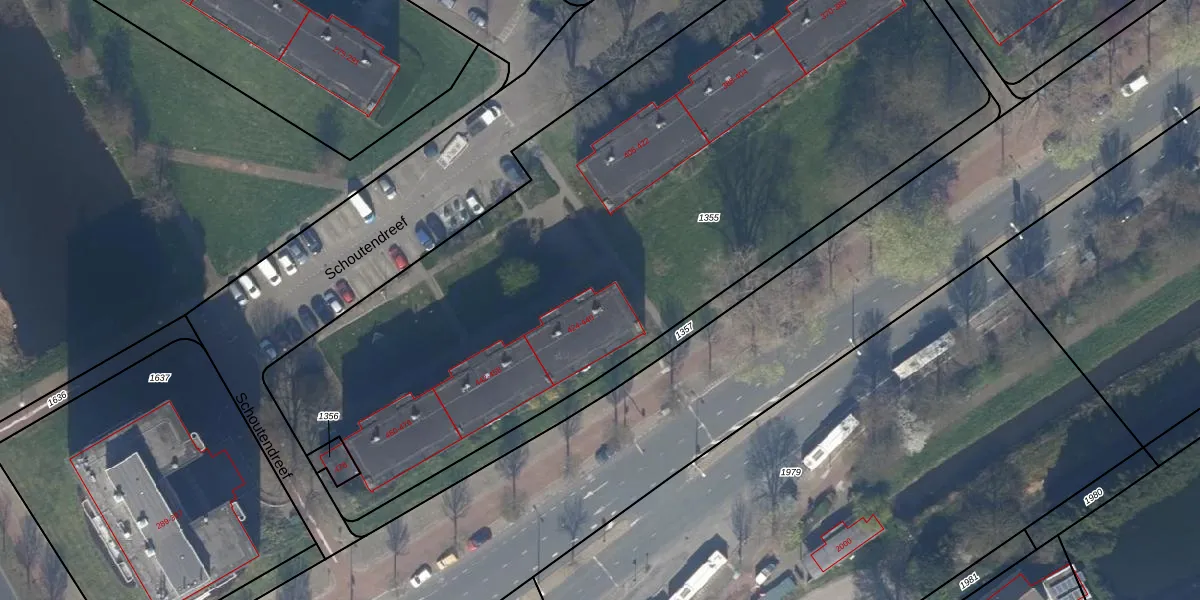 Het perceel waarop Schoutendreef 430 staat heeft een oppervlakte van 4567 m². Dit is een zeer groot perceel. De perceeloppervlakte wordt geregistreerd door het Kadaster. Gedetailleerde informatie over de maten van dit perceel kunt u vinden in het rapport Kadastrale kaart met maatvoering van Schoutendreef 430.