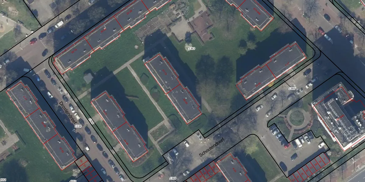 Het perceel waarop Schoutendreef 55 staat heeft een oppervlakte van 9421 m². Dit is een zeer groot perceel. De perceeloppervlakte wordt geregistreerd door het Kadaster. Gedetailleerde informatie over de maten van dit perceel kunt u vinden in het rapport Kadastrale kaart met maatvoering van Schoutendreef 55.