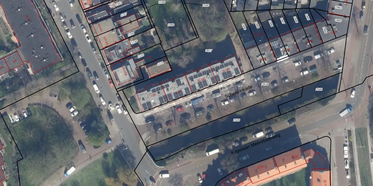 Schwerinkade 12 is gelegen op kadastraal perceel LDN03G3417. Deze kadastrale aanduiding is uniek en wordt gebruikt door het Kadaster om eigendomsrechten en andere zakelijke rechten vast te leggen. Het perceel maakt onderdeel uit van de kadastrale gemeente Loosduinen.
