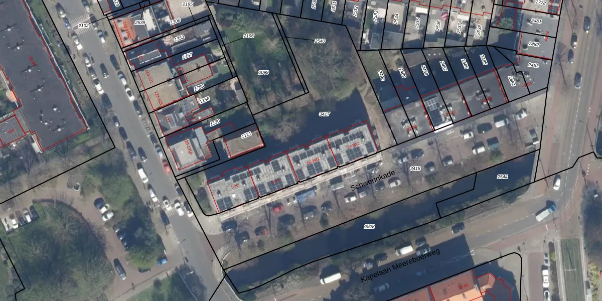 Schwerinkade 29-F is gelegen op kadastraal perceel LDN03G3417. Deze kadastrale aanduiding is uniek en wordt gebruikt door het Kadaster om eigendomsrechten en andere zakelijke rechten vast te leggen. Het perceel maakt onderdeel uit van de kadastrale gemeente Loosduinen.