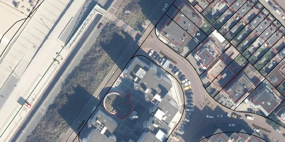 Seinpostduin 166 is gelegen op kadastraal perceel GVH23AF2462. Deze kadastrale aanduiding is uniek en wordt gebruikt door het Kadaster om eigendomsrechten en andere zakelijke rechten vast te leggen. Het perceel maakt onderdeel uit van de kadastrale gemeente 's-Gravenhage.