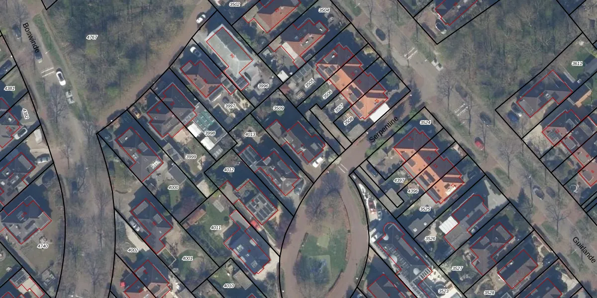 Het perceel waarop Serpentine 2 staat heeft een oppervlakte van 388 m². Dit is een groot perceel. De perceeloppervlakte wordt geregistreerd door het Kadaster. Gedetailleerde informatie over de maten van dit perceel kunt u vinden in het rapport Kadastrale kaart met maatvoering van Serpentine 2.