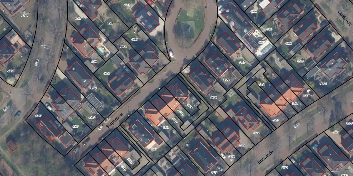 Serpentine 9 is gelegen op kadastraal perceel GVH46BG3519. Deze kadastrale aanduiding is uniek en wordt gebruikt door het Kadaster om eigendomsrechten en andere zakelijke rechten vast te leggen. Het perceel maakt onderdeel uit van de kadastrale gemeente 's-Gravenhage.