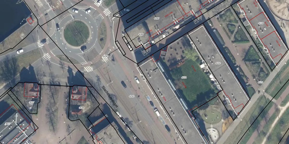 Slachthuisstraat 20 is gelegen op kadastraal perceel GVH21AD4101. Deze kadastrale aanduiding is uniek en wordt gebruikt door het Kadaster om eigendomsrechten en andere zakelijke rechten vast te leggen. Het perceel maakt onderdeel uit van de kadastrale gemeente 's-Gravenhage.