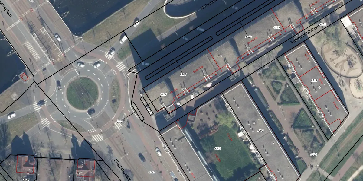 Slachthuisstraat 4-B is gelegen op kadastraal perceel GVH21AD4283. Deze kadastrale aanduiding is uniek en wordt gebruikt door het Kadaster om eigendomsrechten en andere zakelijke rechten vast te leggen. Het perceel maakt onderdeel uit van de kadastrale gemeente 's-Gravenhage.