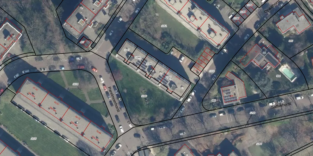 Het perceel waarop Smaragdhorst 33 staat heeft een oppervlakte van 292 m². Dit is een middelgroot perceel. De perceeloppervlakte wordt geregistreerd door het Kadaster. Gedetailleerde informatie over de maten van dit perceel kunt u vinden in het rapport Kadastrale kaart met maatvoering van Smaragdhorst 33.