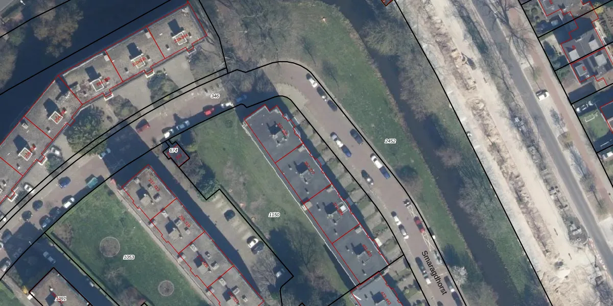 Het perceel waarop Smaragdhorst 359 staat heeft een oppervlakte van 2696 m². Dit is een zeer groot perceel. De perceeloppervlakte wordt geregistreerd door het Kadaster. Gedetailleerde informatie over de maten van dit perceel kunt u vinden in het rapport Kadastrale kaart met maatvoering van Smaragdhorst 359.