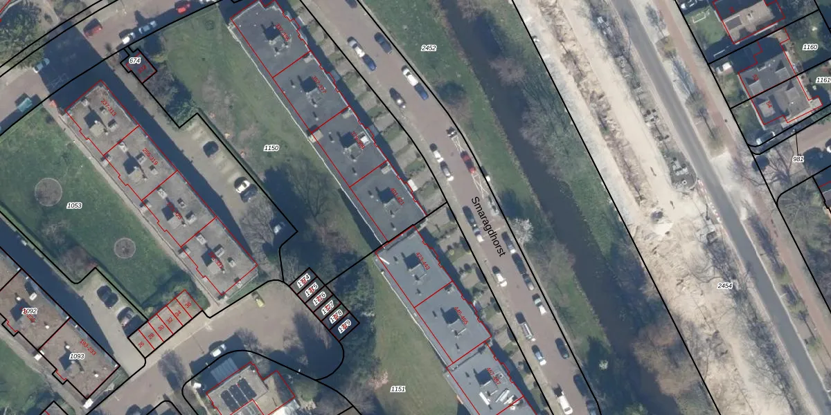 Het perceel waarop Smaragdhorst 417 staat heeft een oppervlakte van 2696 m². Dit is een zeer groot perceel. De perceeloppervlakte wordt geregistreerd door het Kadaster. Gedetailleerde informatie over de maten van dit perceel kunt u vinden in het rapport Kadastrale kaart met maatvoering van Smaragdhorst 417.