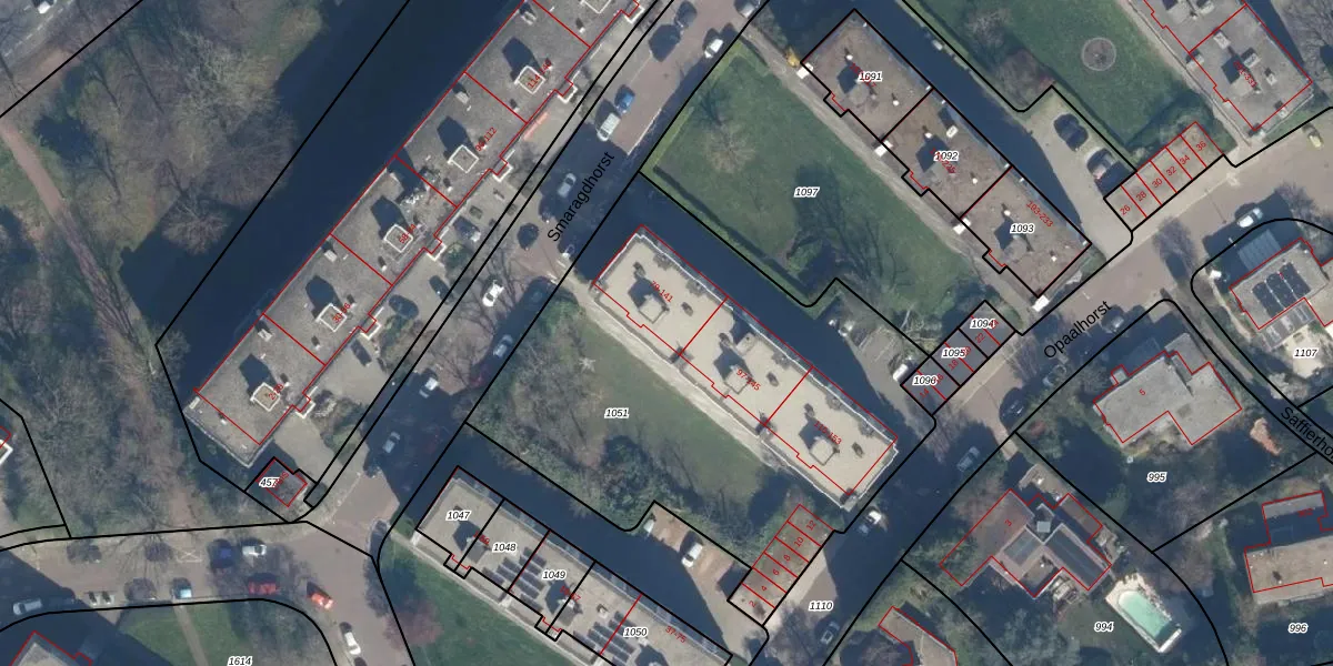Het perceel waarop Smaragdhorst 89 staat heeft een oppervlakte van 2440 m². Dit is een zeer groot perceel. De perceeloppervlakte wordt geregistreerd door het Kadaster. Gedetailleerde informatie over de maten van dit perceel kunt u vinden in het rapport Kadastrale kaart met maatvoering van Smaragdhorst 89.