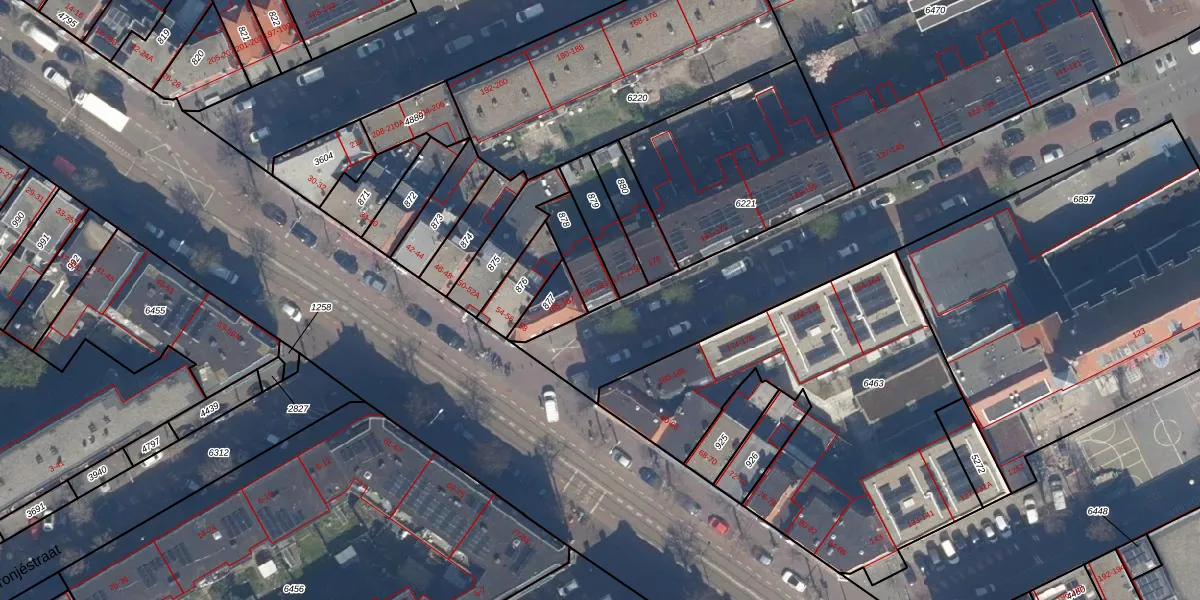 Het adres ligt op het perceel GVH19-AB-878, dat zich in de kadastrale gemeente 's-Gravenhage bevindt. Het perceel is 113 m² groot. Dat is kleiner dan de gemiddelde perceeloppervlakte in 's-Gravenhage, dat op 366,58 m² ligt. De grootste perceeloppervlakte in de kadastrale gemeente is 2,7 ha. De kleinste oppervlakte bedraagt 0 m². Er zijn 2 adressen aanwezig op het perceel. In de Basisregistratie Kadaster (BRK) werden de grenzen van het perceel geregistreerd op 31-10-2007.